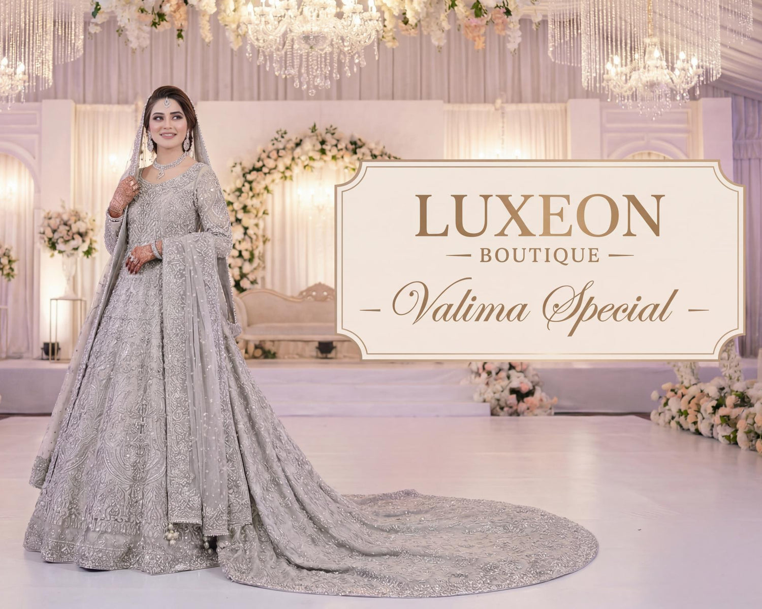 Experience the pinnacle of sophistication with Luxeon Boutique’s Valima Special collection, featuring ethereal pastels and intricate silver zardozi work.
